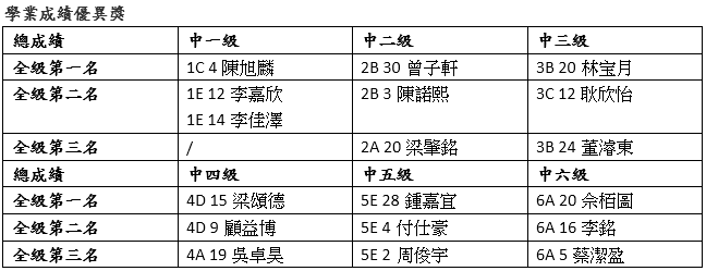 中一至中六學業成績優異獎(全級)