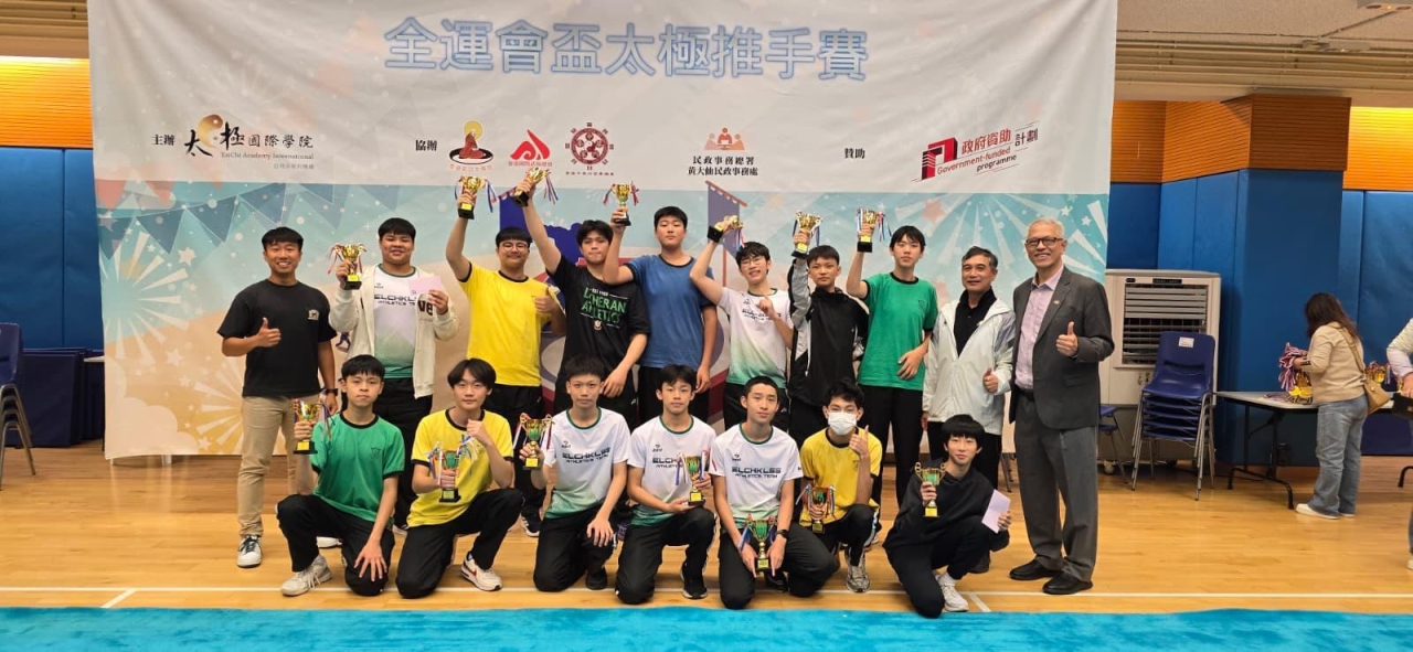 本校多名同學於2025年12月14日參加由太極國際學院與民政事務總署聯合主辦的「全運會盃 太極推手賽」。活動於彩虹道體育館舉行,全港多間中小學參與,旨在透過太極推手比賽推廣傳 統武術文化。在比賽前有幸邀請太極國際學院的資深導師到校為參賽學生舉辨工作坊,參與反 應熱烈。同學們透過工作坊令到比賽表現提升了技藝,增進了對傳統文化的認識,並在激烈競 爭中展現堅韌精神,獲益良多。感謝負責老師的帶領及同學們的努力參與。