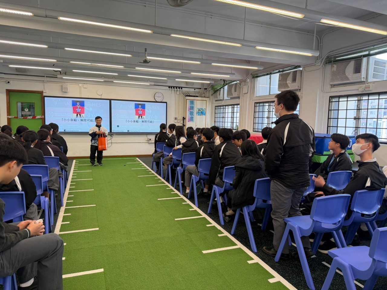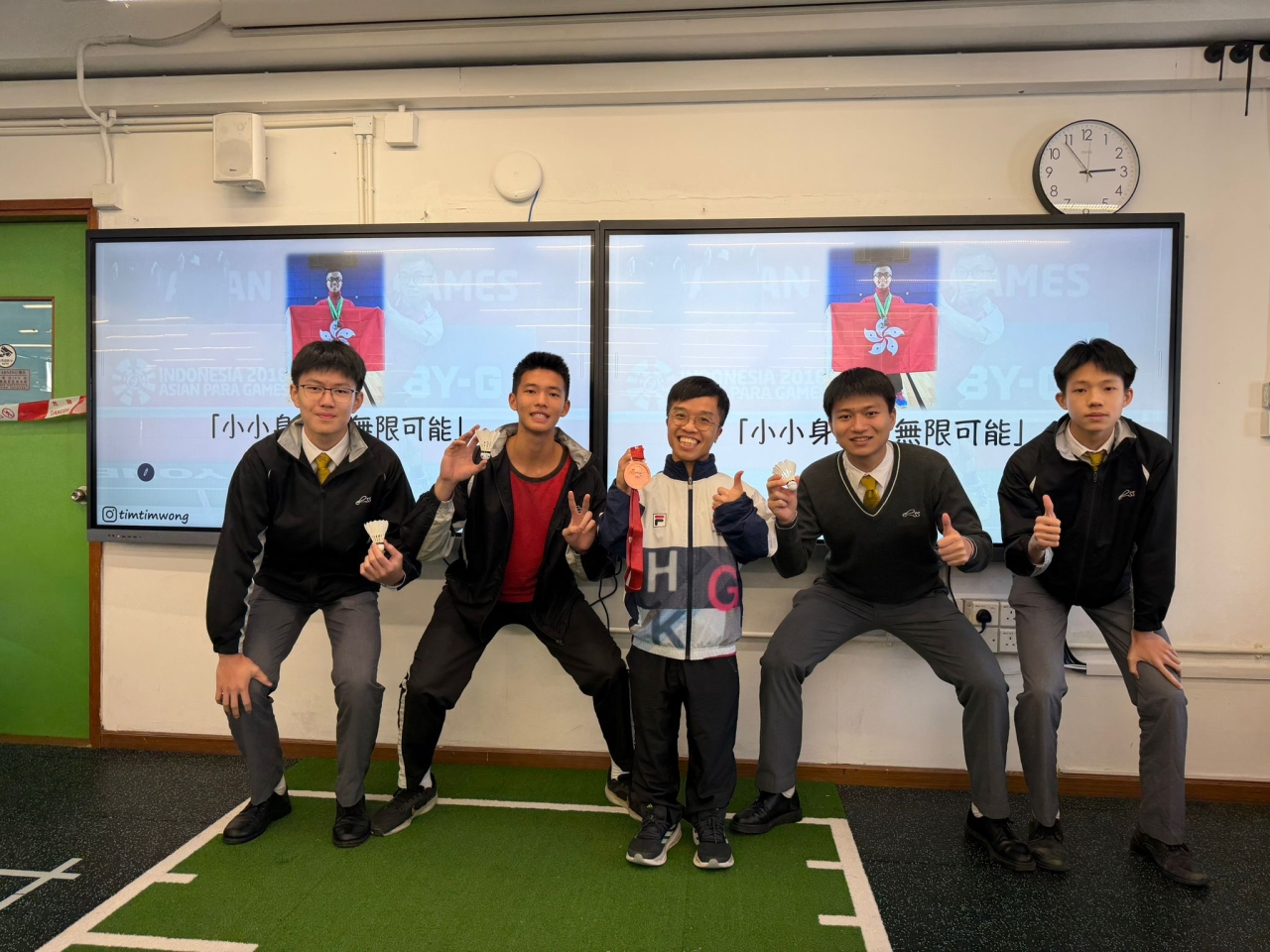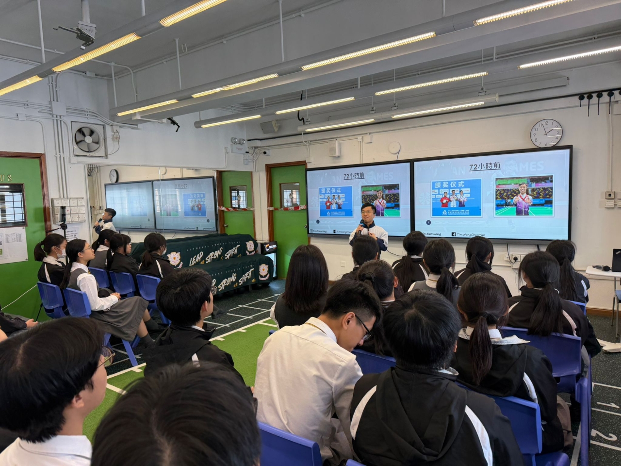 本校與油尖旺區社區組織於2025年12月17日舉辦了「躍動全運」體驗巡禮「薪火相傳」 進校活動。當天邀請了中國香港殘疾人士羽毛球代表王鎮炎先生與中五學生進行生命教育分 享,並即場與同學進行羽毛球示範。期望透過活動將全運會的精神傳承給新一代,推動體育 精神與共融文化。