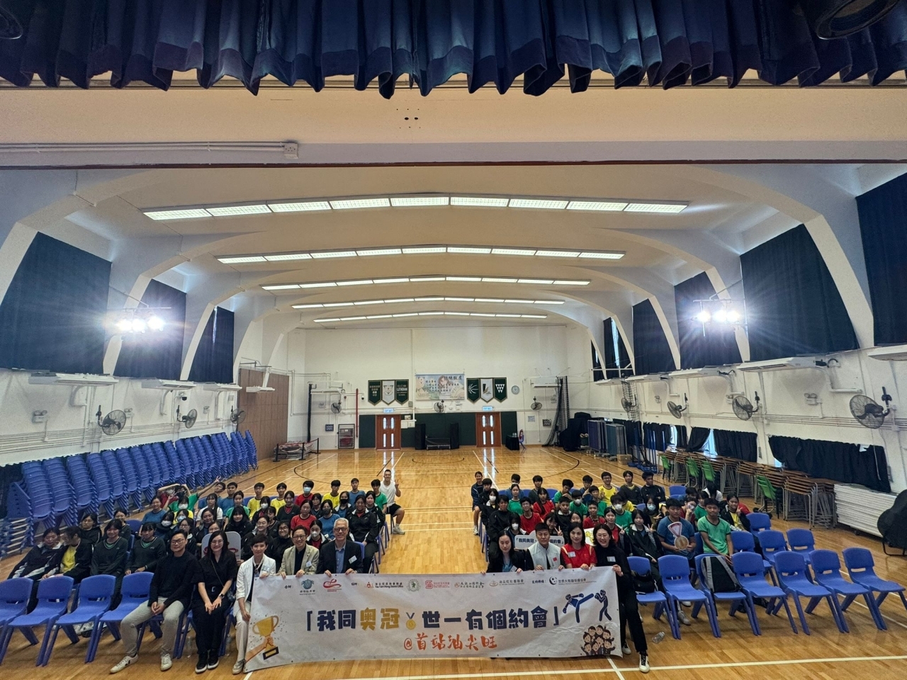 課外活動組及體育科合作,於2025年10月14日舉行由香港駿青會與奧冠慈善基金會聯合主辦「我 同奧冠・世一有個約會」。是次活動以「傳承體育精神,燃亮青春夢想」為核心宗旨,旨在將賽場 上的堅韌意志與崇高品格,轉化為青少年可伴隨終身的成長智慧,今次活動邀請到2008年北京奧 運會52公斤級散打冠軍秦力子和全國武術散打冠軍胡丹丹到本校分享