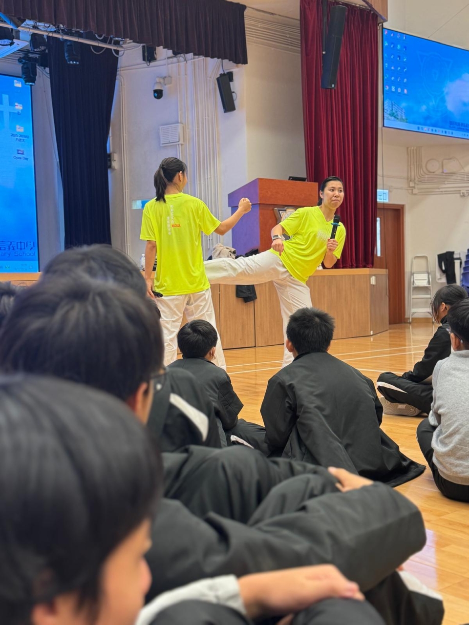 活動由前香港空手道運動員專業指導,透過體驗競技空手道的基本技巧、體能訓練及對打練習,幫助學生提升專注力、自信心與紀律性,強身健體之餘,更培養堅毅精神。這是學校與慈善團體合作推出的社區計劃,讓同學在安全環境下接觸正規空手道,開拓運動視野。中一及中五同學在課堂積極參與,一起「道」出潛能!